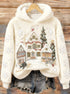 Bluza z kapturem z haftem w flaneli z świąteczną sceną śnieżną dla kobiet