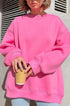 Ten top z okrągłym dekoltem jest dostępny w szerokiej gamie pięknych kolorów: Różowym, Ciemnozielonym, Czarnym, Zielonym, Ciemnoszarym, Niebieskim i Brunatnym. Przed złożeniem zamówienia rozmiarów S, M lub L prosimy o zapoznanie się z naszą tabelą rozmiarów, aby znaleźć idealny krój oversize.
