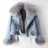 Damska Ciepłym Kołnierzem Kurtka Jeansowa - Modna Niebieski Zimowa