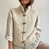 Damska Kamizelka Beżowa Krótka - Dzianinowa z Ozdobnymi Guzikami