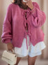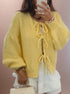 Damski Kardigan - Wiązanie na Kokardki z Rękawem Balonowym