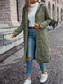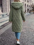 Damski Zielony Pikowany Płaszcz -Długi Z Kapturem i Zapięciem Na Zamek