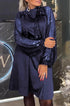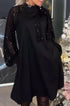 Delikatnie rozkloszowana linia A pięknie wysmukla sylwetkę, a okrągły dekolt nadaje klasycznego, kobiecego wykończenia. Długie rękawy typu lantern dodają nowoczesności i subtelnego świątecznego charakteru — idealnie komponują się z gładkim, aksamitnym materiałem, który pięknie odbija światło.