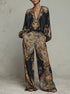 Ten luźny, dwuczęściowy komplet w barokowym stylu łączy wygodę z wyrafinowaną estetyką. Gdy ubranie układa się idealnie i daje swobodę, elegancja staje się czymś naturalnym.